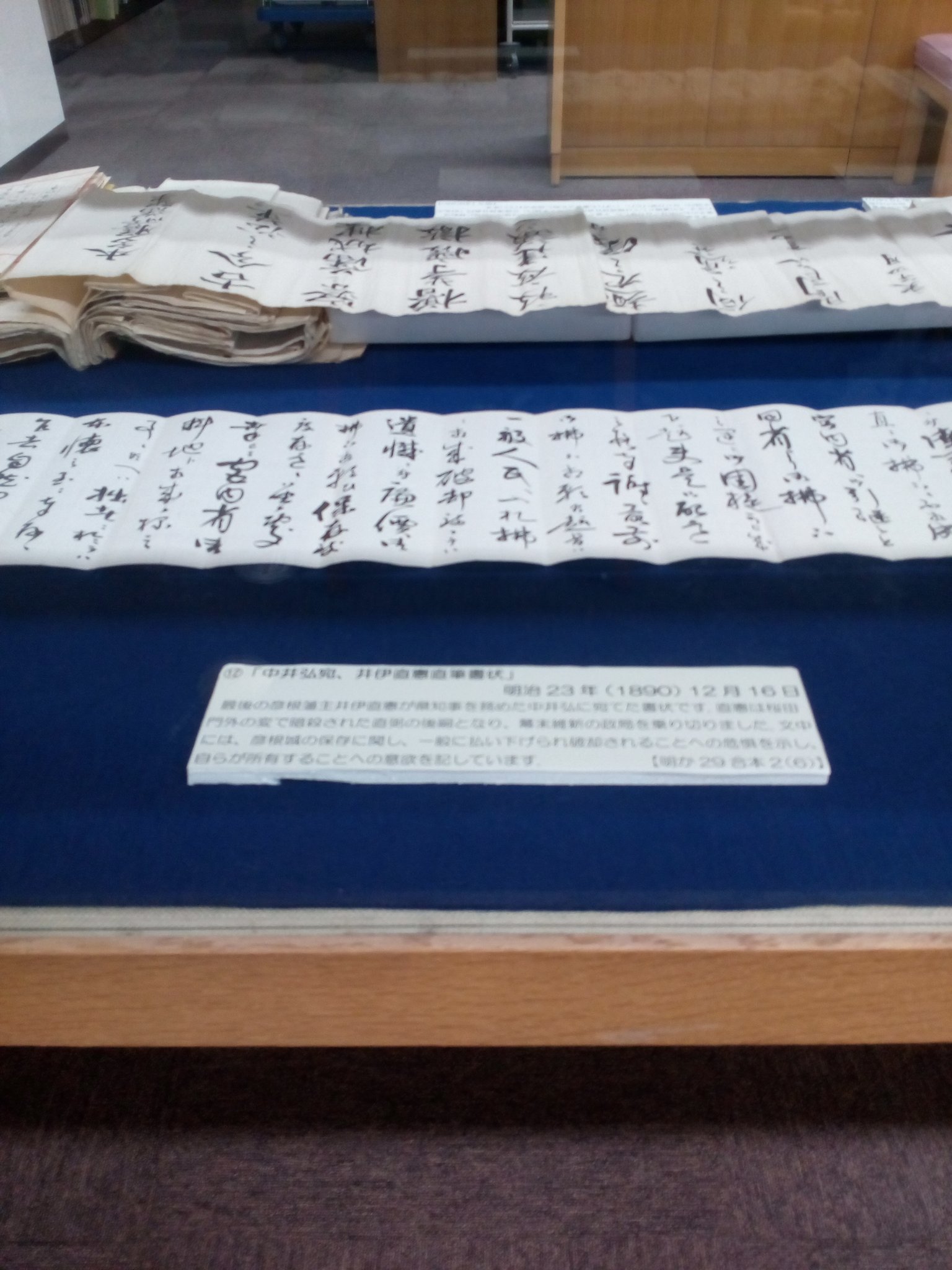 滋賀県立公文書館 現在開催中の展示 公文書に見る近代の城郭 では 彦根藩最後の藩主 井伊直憲の直筆書状を展示しています この書状は 彦根城の払い下げ問題に関し 当県知事を務めた中井弘に宛てた書状です ぜひご覧にお越しください T Co